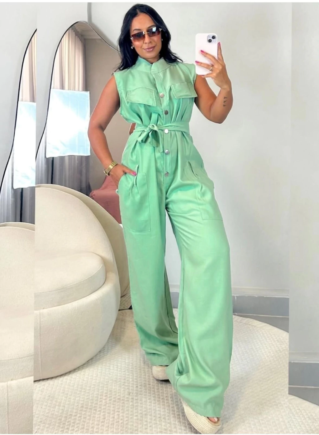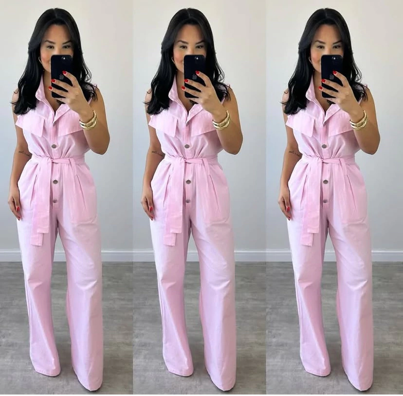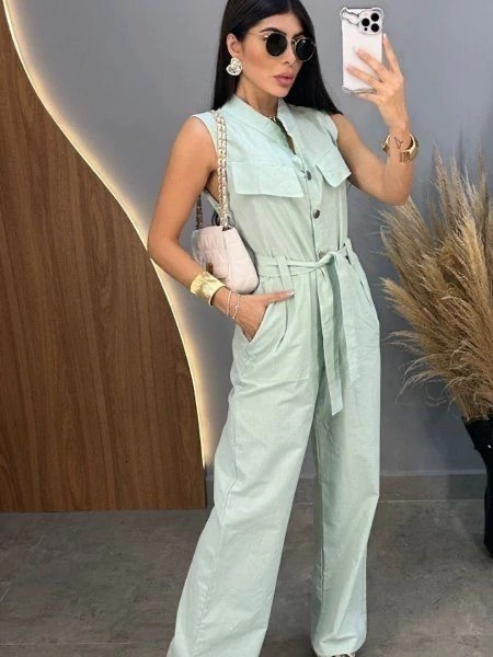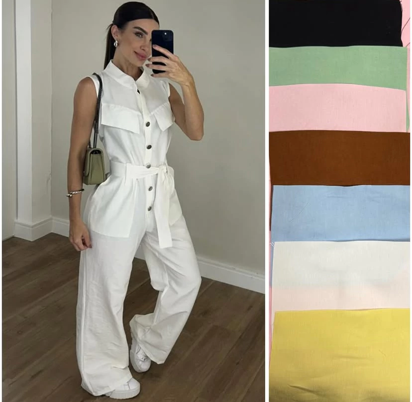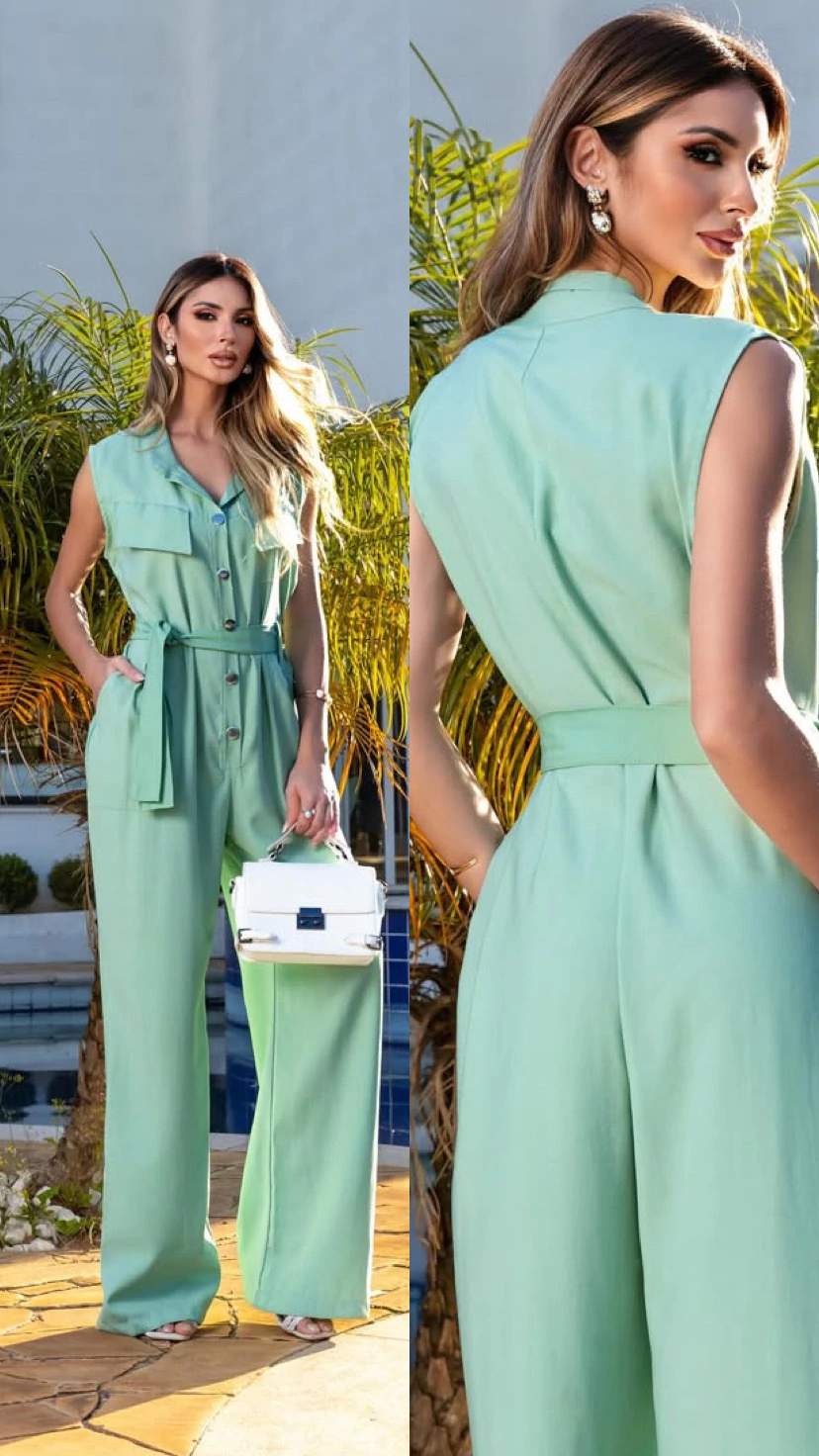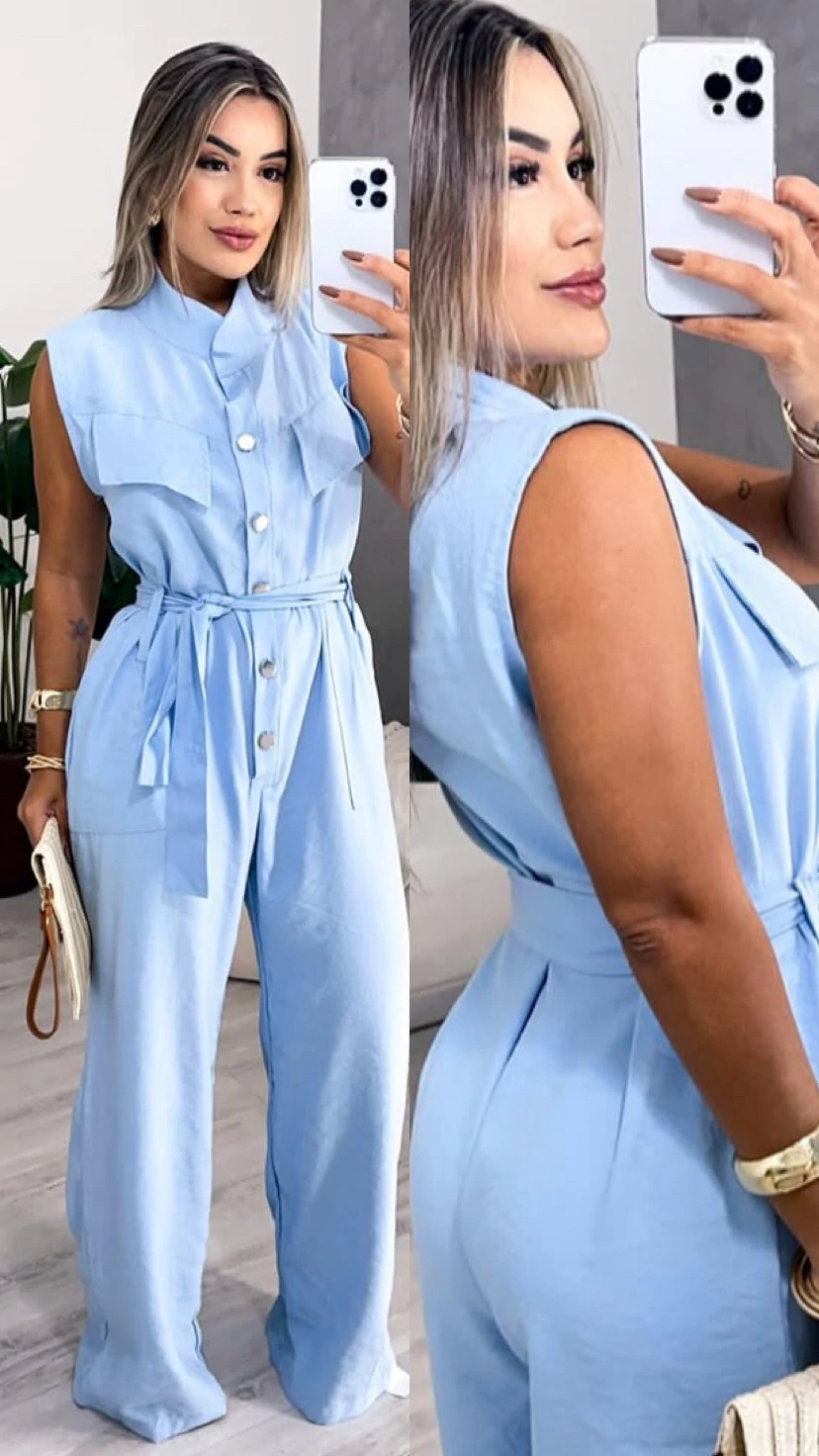Macacão Eveli regata botão pantalona alfaiataria
