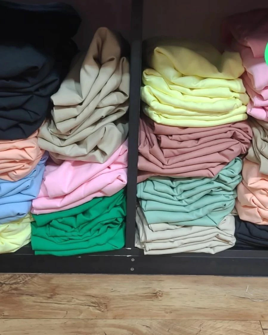 Em tecido alfaiataria poliéster.