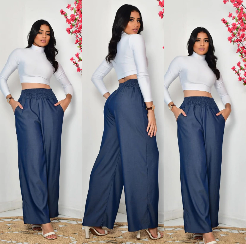 Em tecido jeans chambray com elastano.