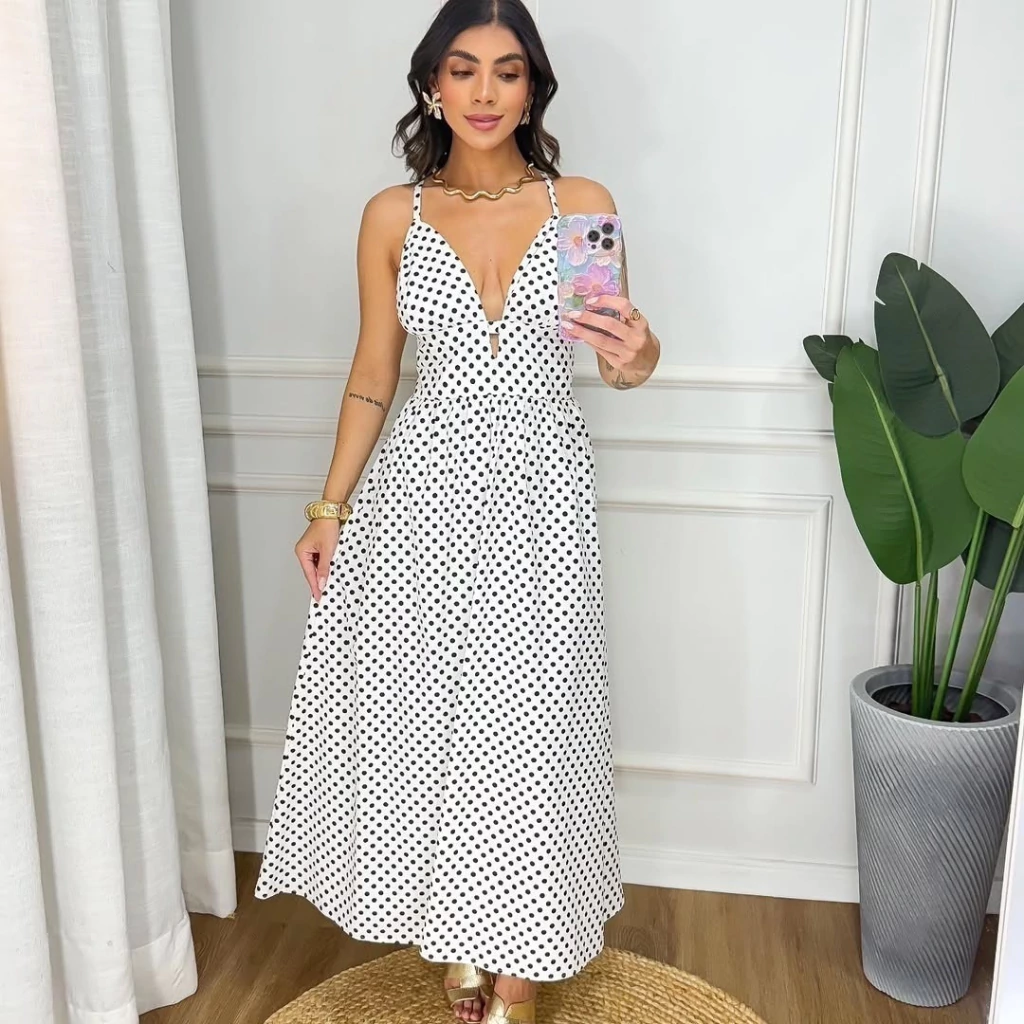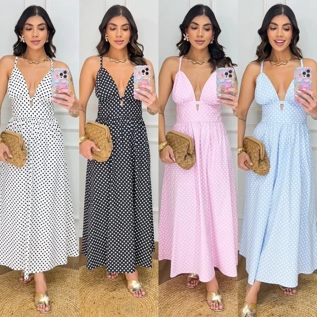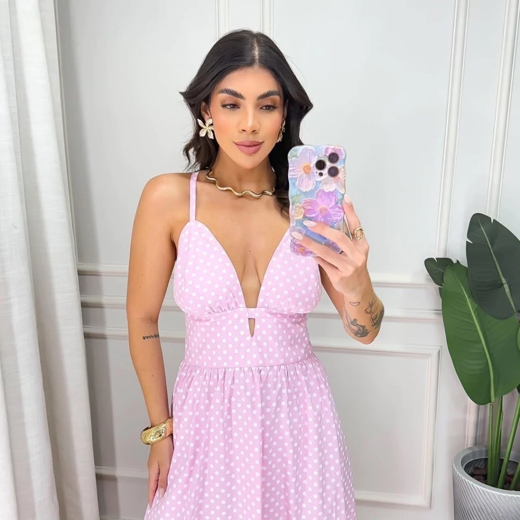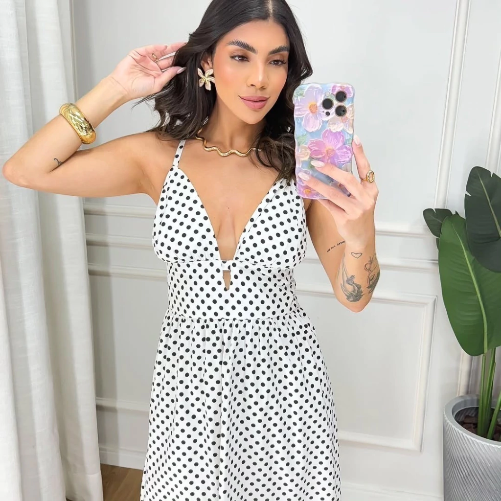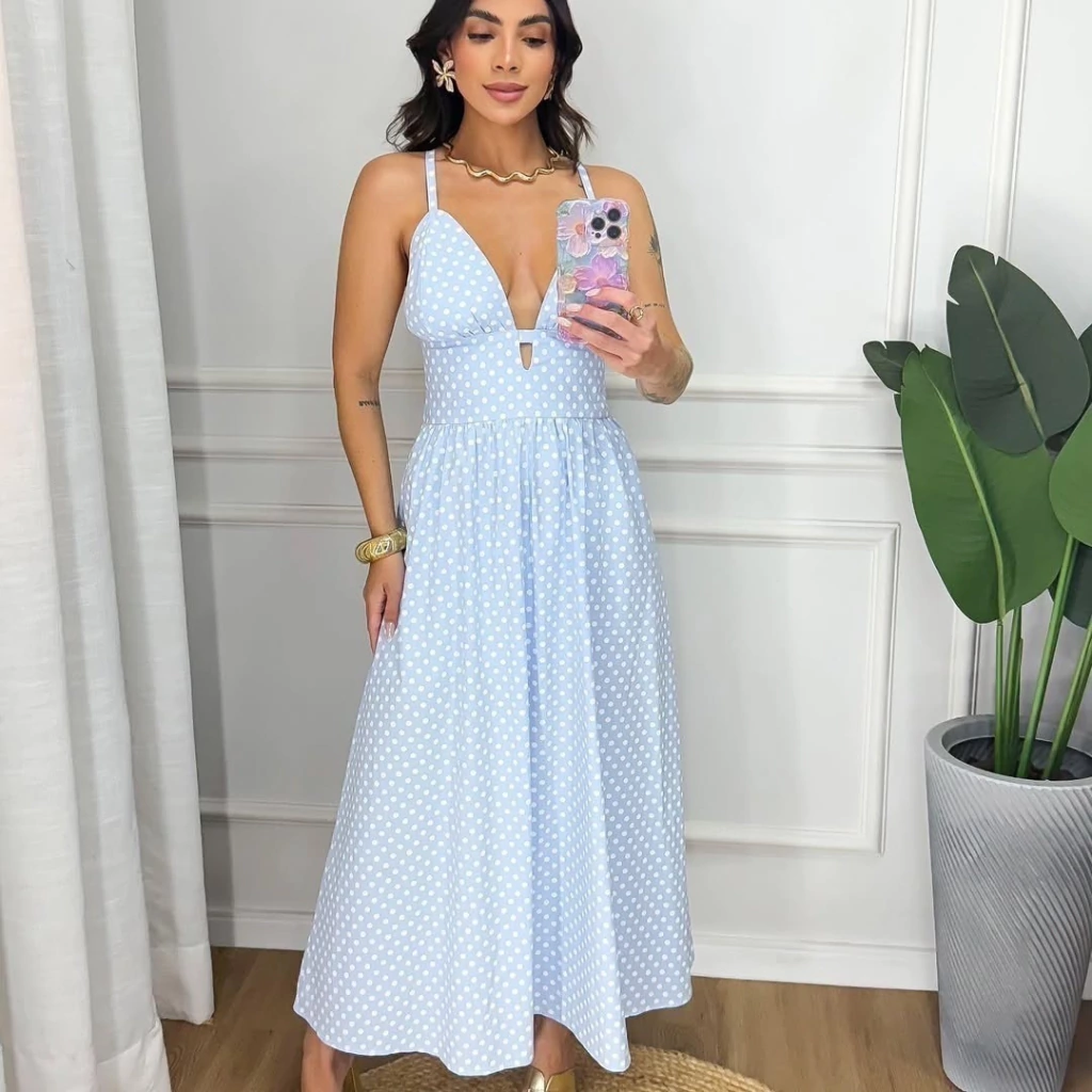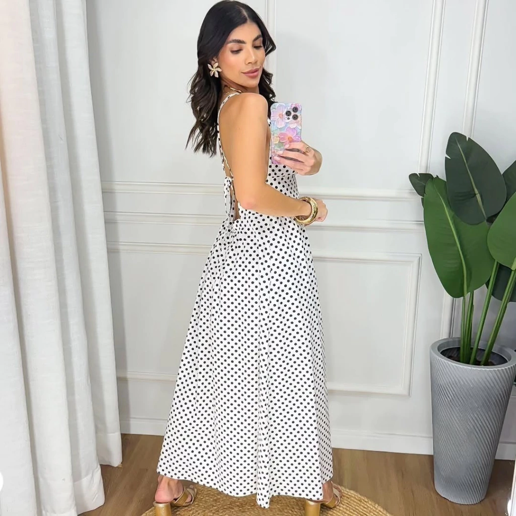 Vestido Caua midi alça fina poá