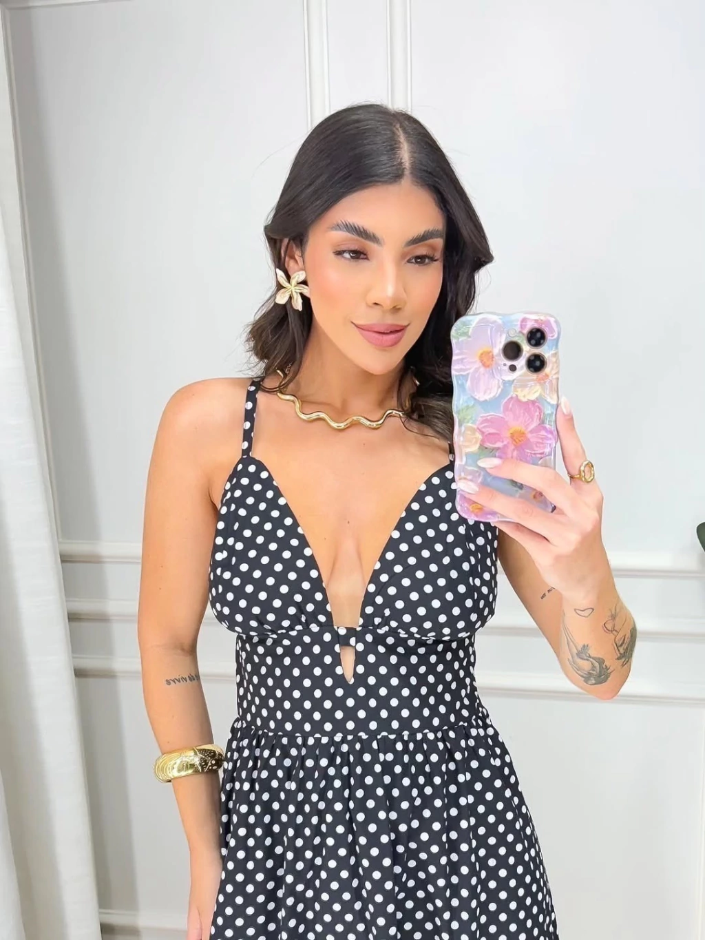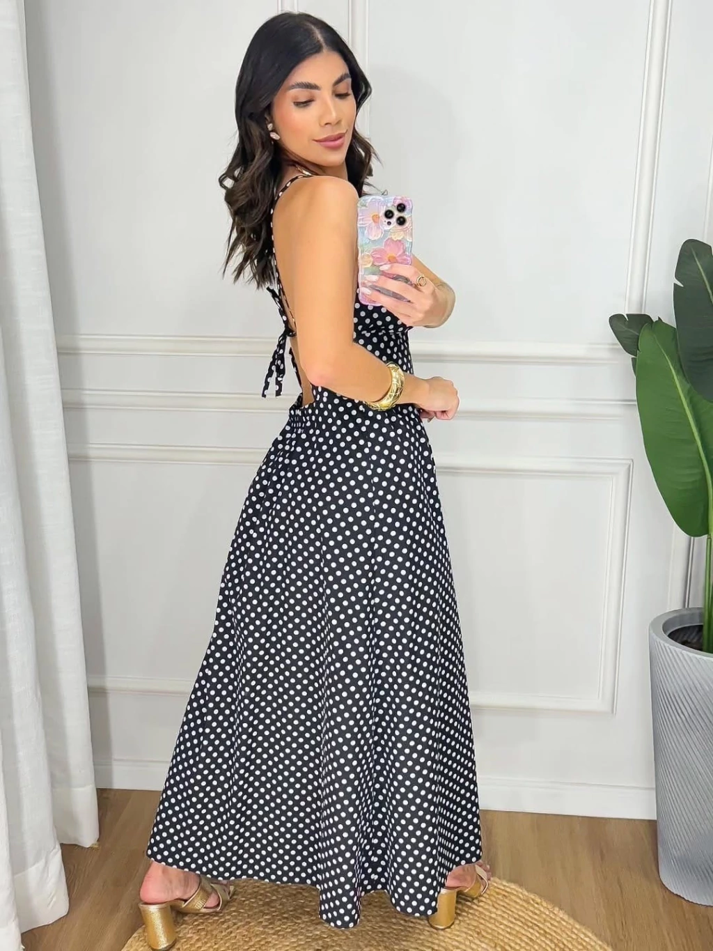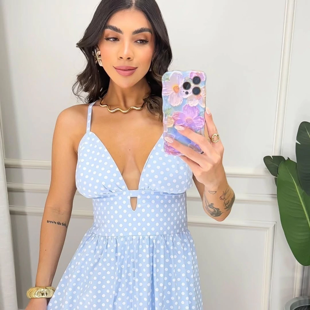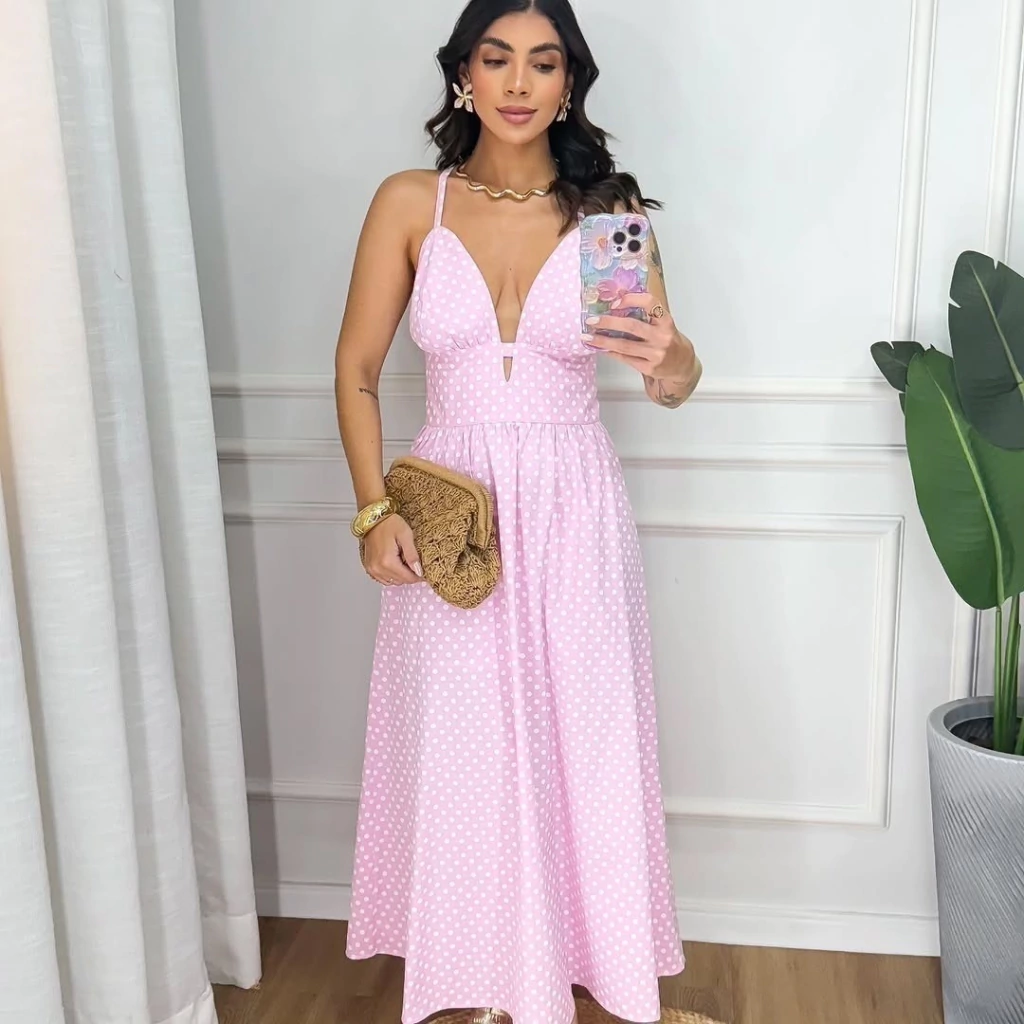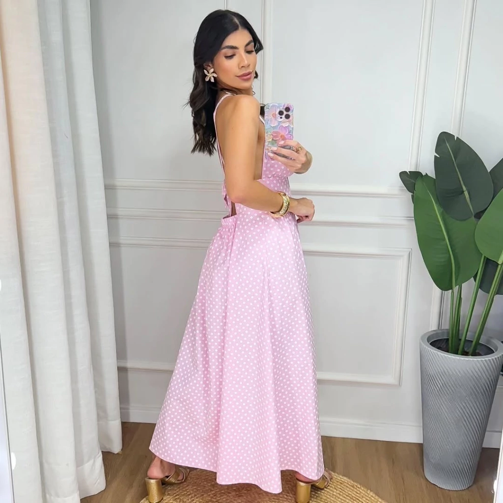 Vestido Caua midi alça fina poá