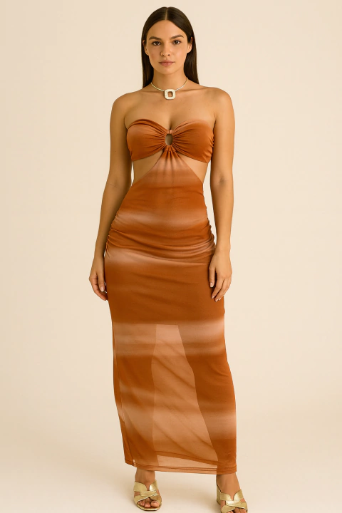 Vestido Beth midi tomara que caia decote argola