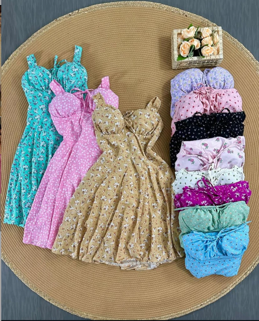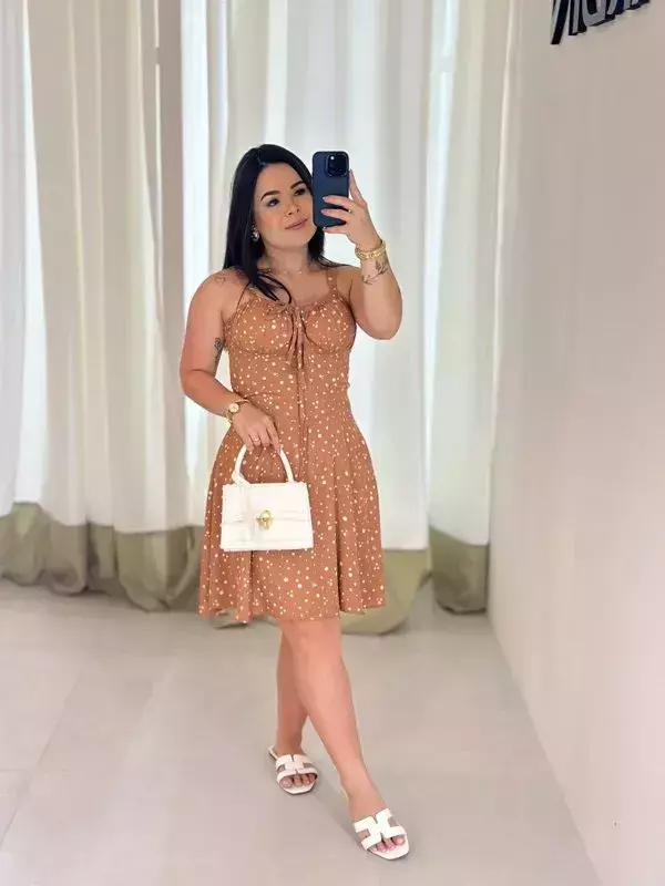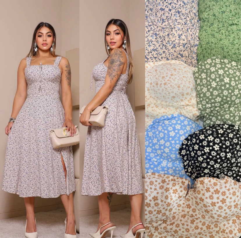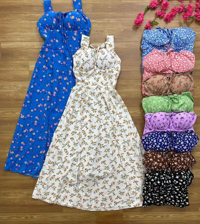 Vestido regata alça grossa camponesa floral verão
