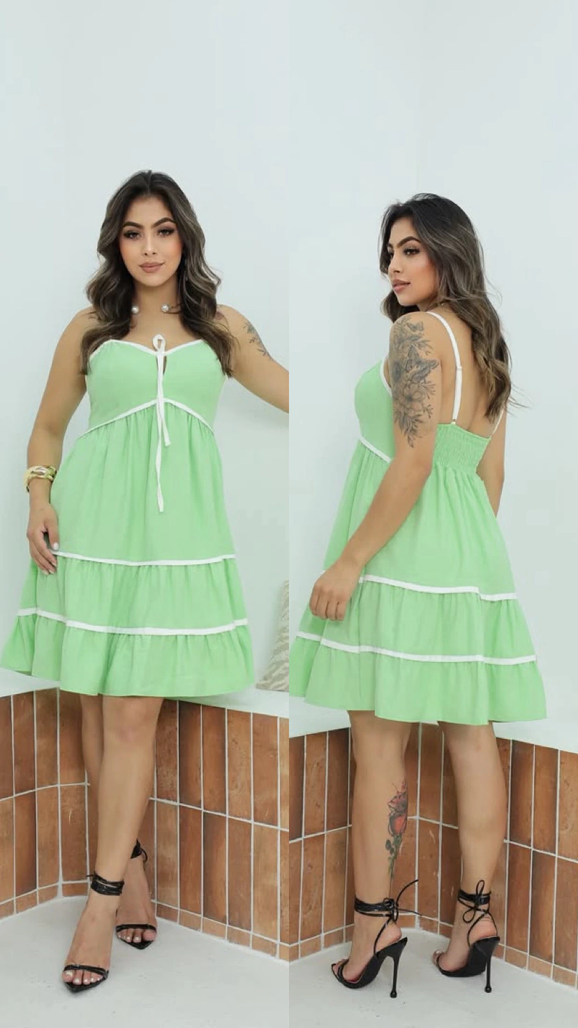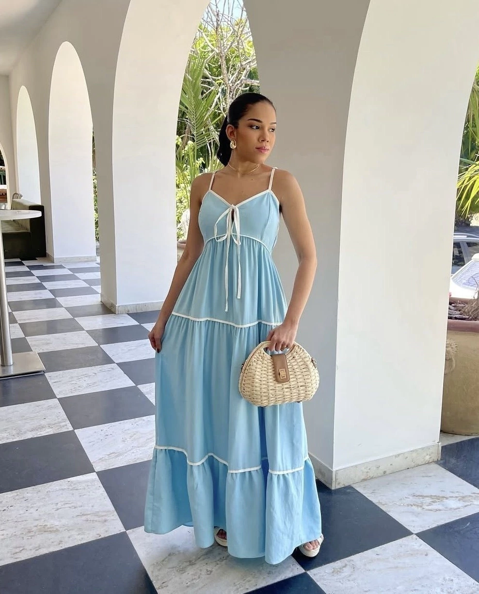 Vestido Sisa alça fina viés bicolor alfaiataria